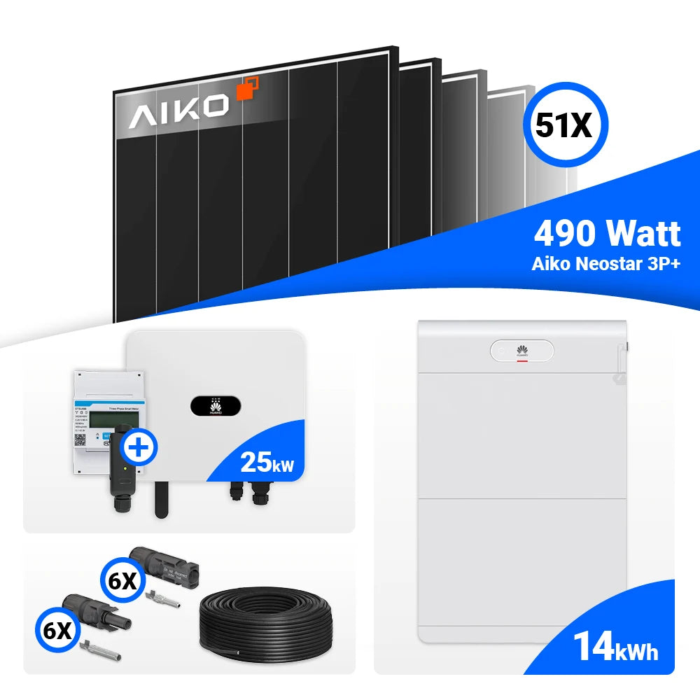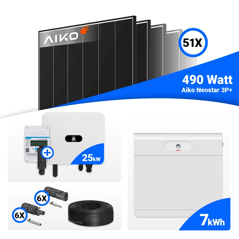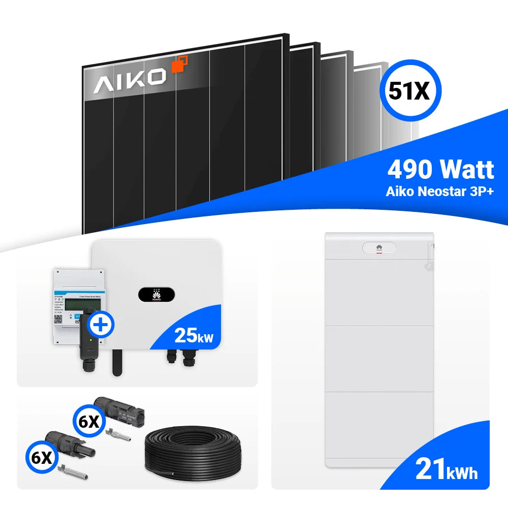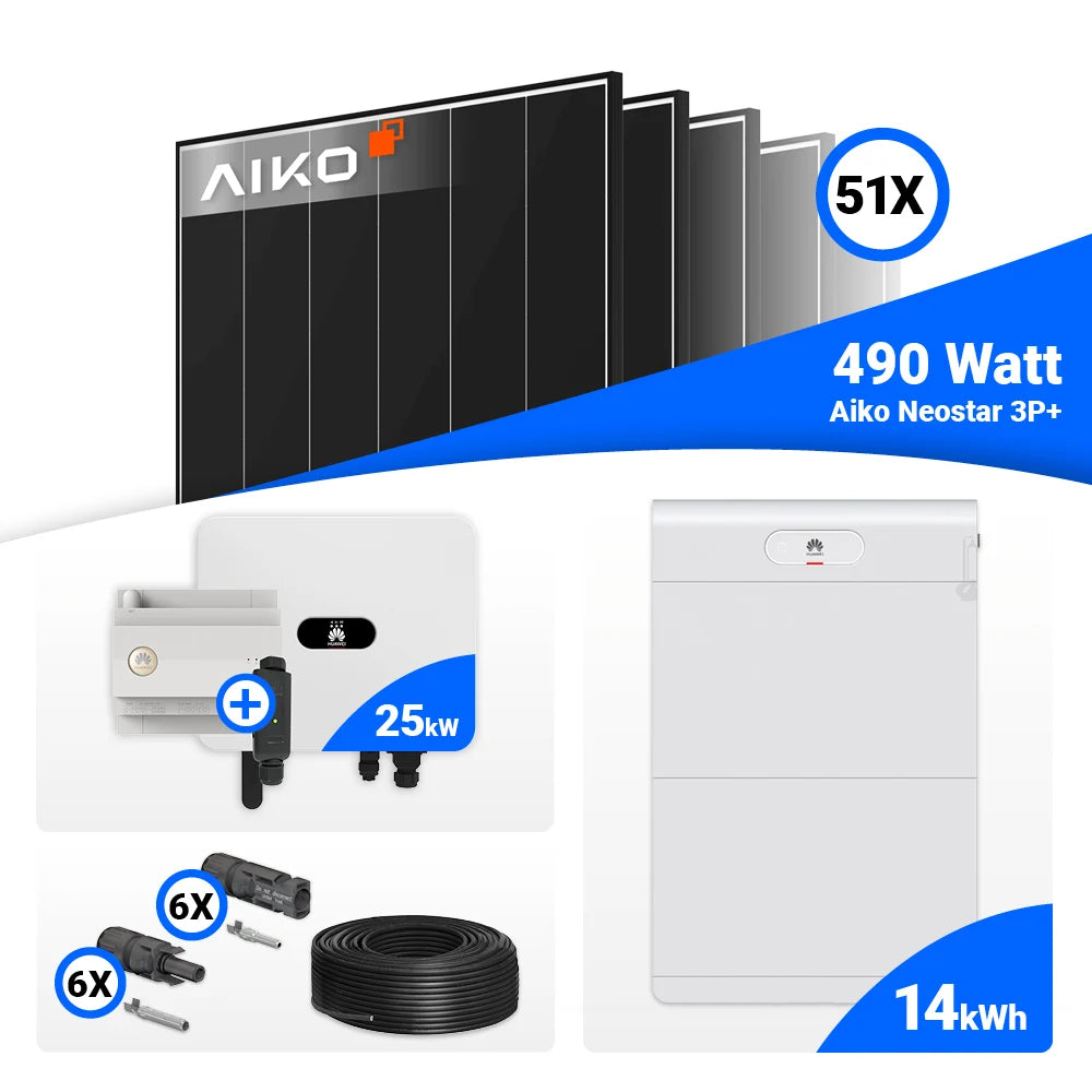 PV Komplettset 25 kWp – 51x AIKO 490W Black Frame & Huawei SUN2000-25K-MB0 mit Speicheroption