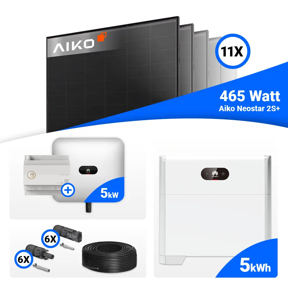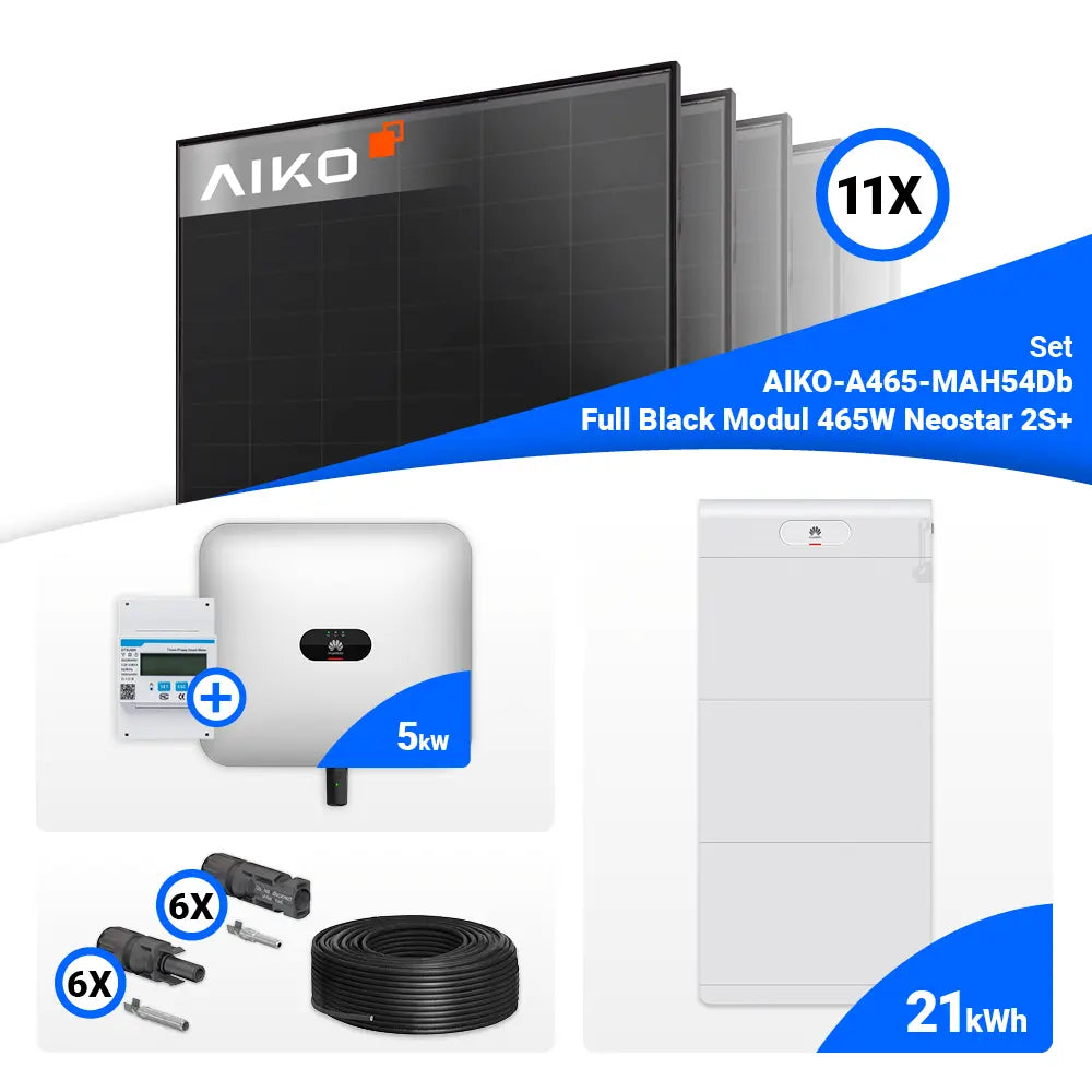 PV Komplettset 5 kWp – 11x AIKO 465W Full Black & Huawei SUN2000-5KTL-M1 mit Speicheroption