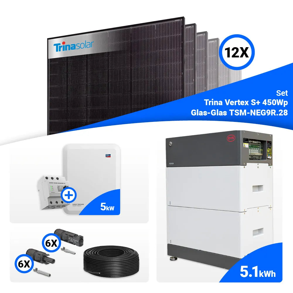 PV Komplettset 5 kWp – 12x Trina 440W Full Black Bifazial & SMA STP5.0-3SE-40 mit Speicheroption