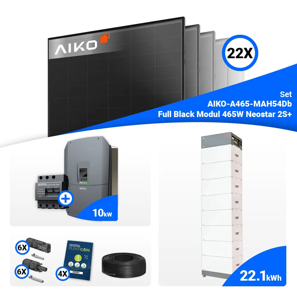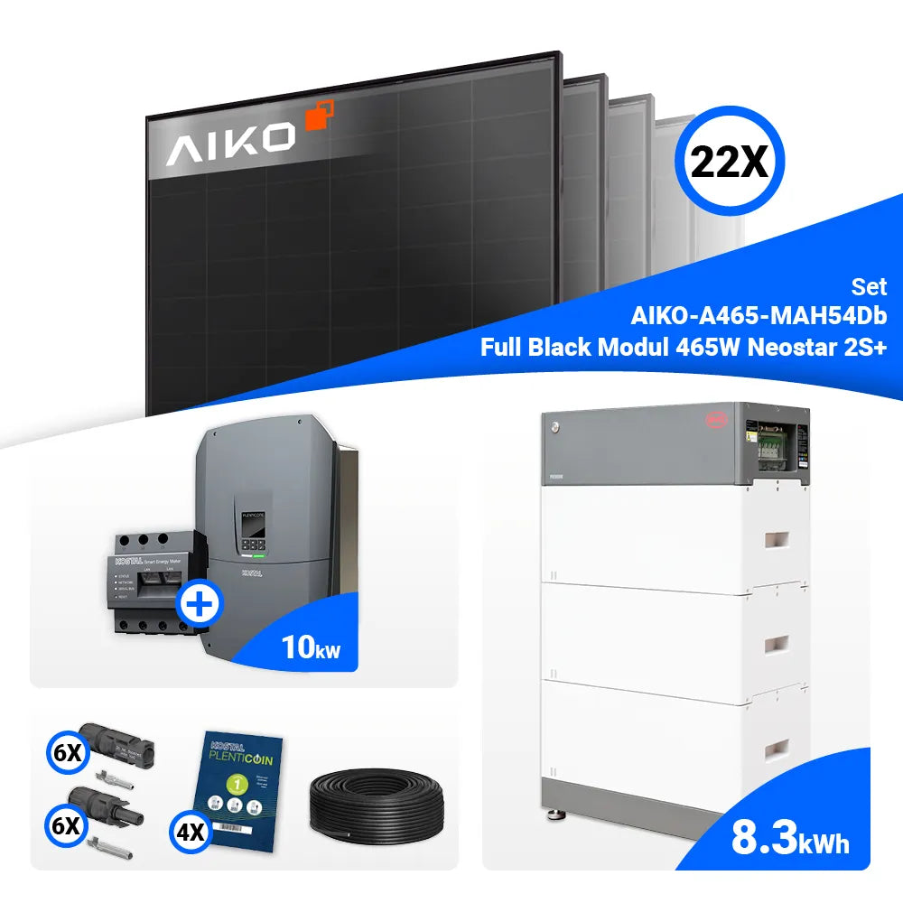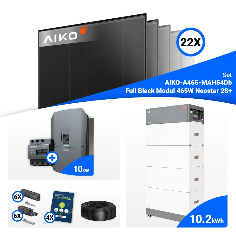 PV Komplettset 10 kWp – 22x AIKO 465W Full Black & Kostal G3 M Plenticore mit Speicheroption