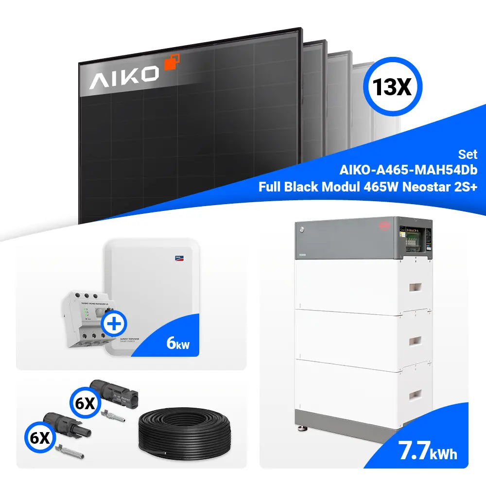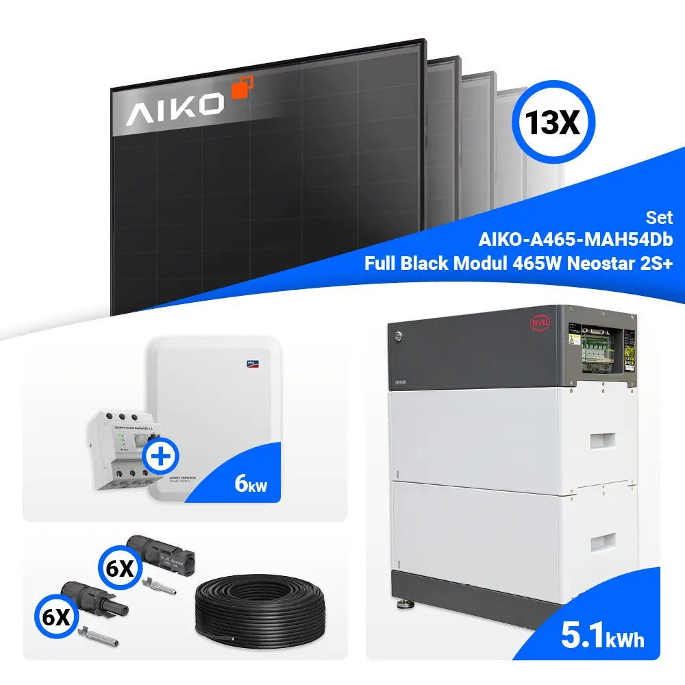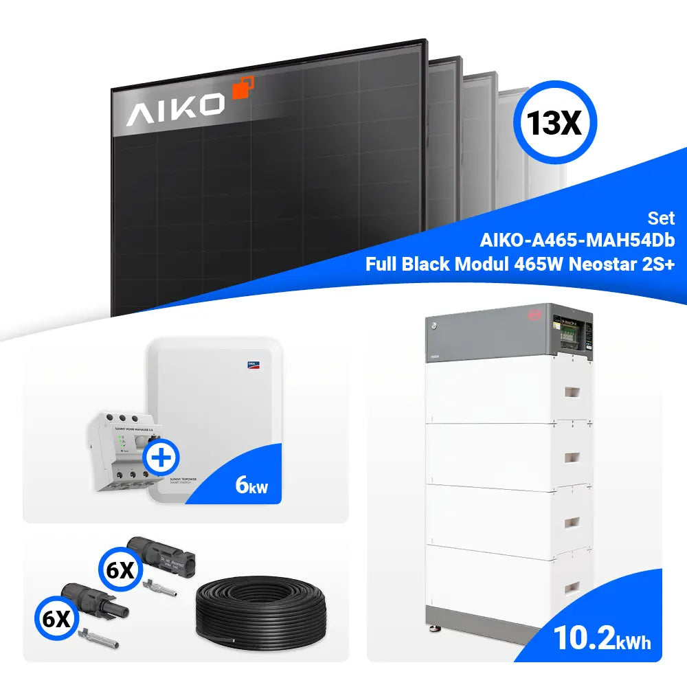 PV Komplettset 6 kWp – 13x AIKO 465W Full Black & SMA STP6.0-3SE-40 mit Speicheroption