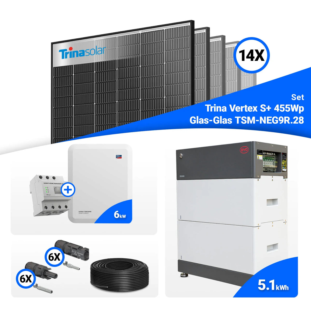PV Komplettset 6 kWp – 14x Trina 455W Black Frame & SMA STP6.0-3SE-40 mit Speicheroption