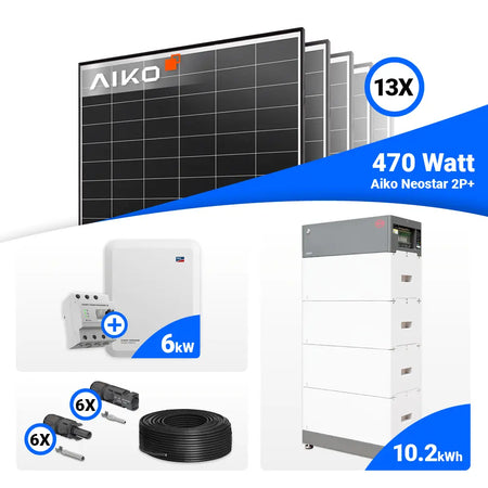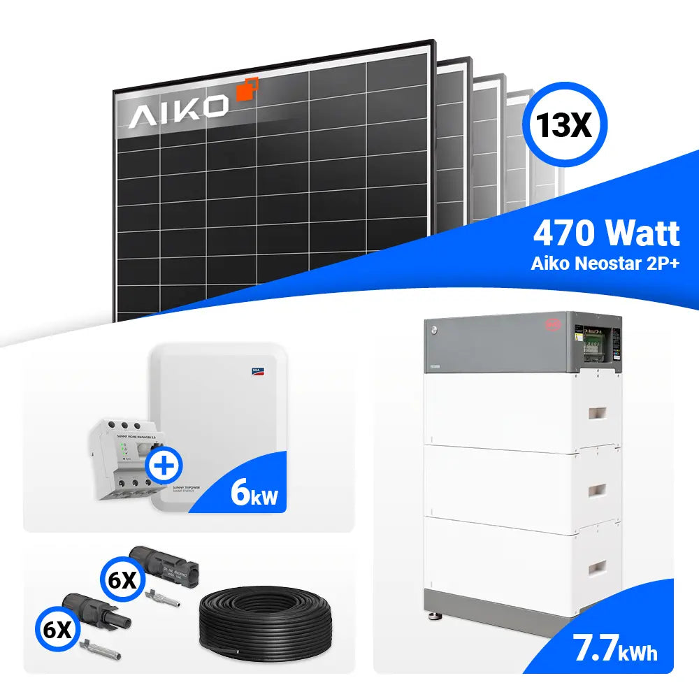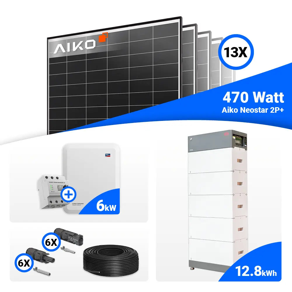 PV Komplettset 6 kWp – 13x AIKO 470W Black Frame & SMA STP6.0-3SE-40 mit Speicheroption