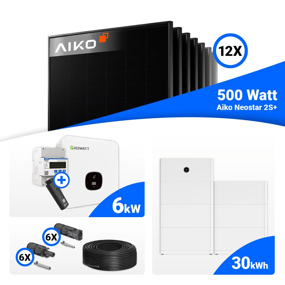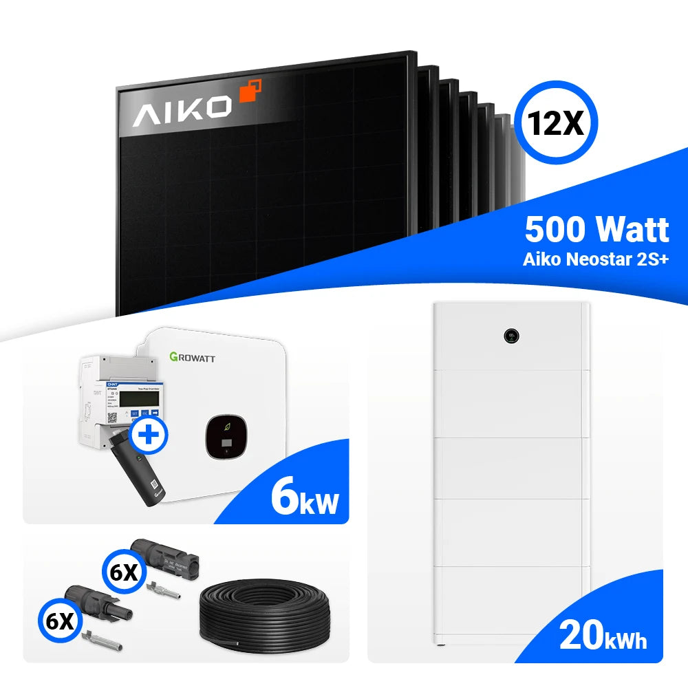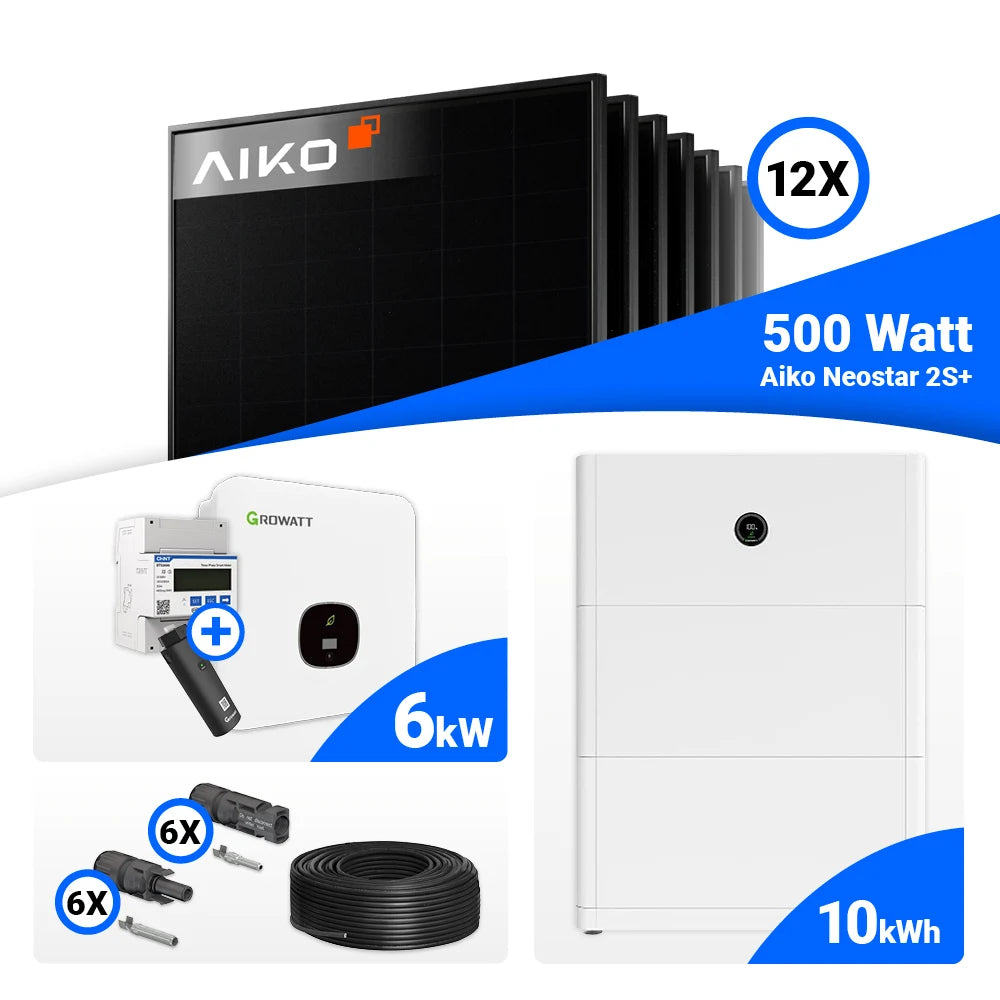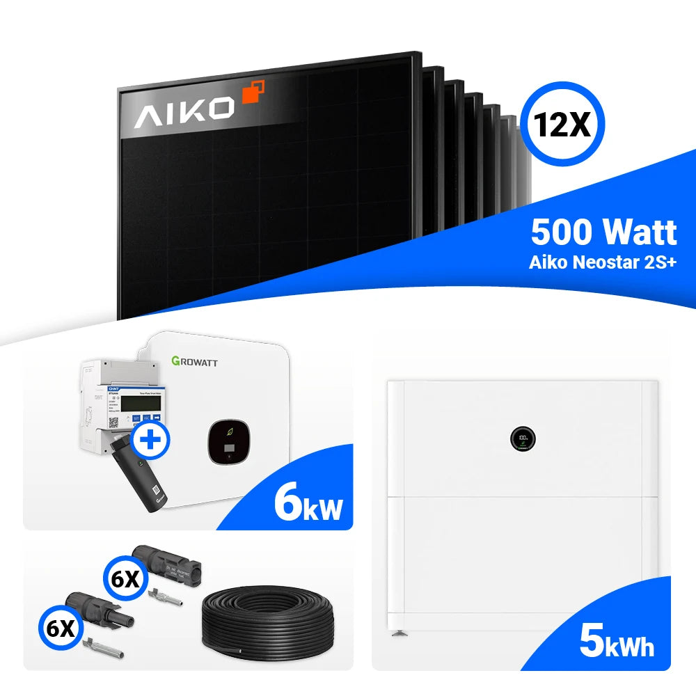 PV Komplettset 6kWp – 12x AIKO 500W Full Black & Growatt MOD 6000TL3-XH BP mit Speicheroption
