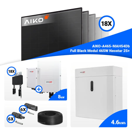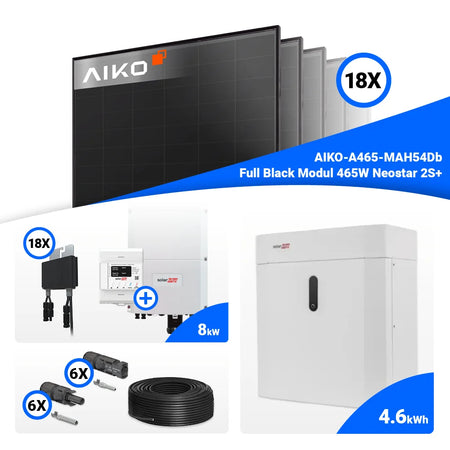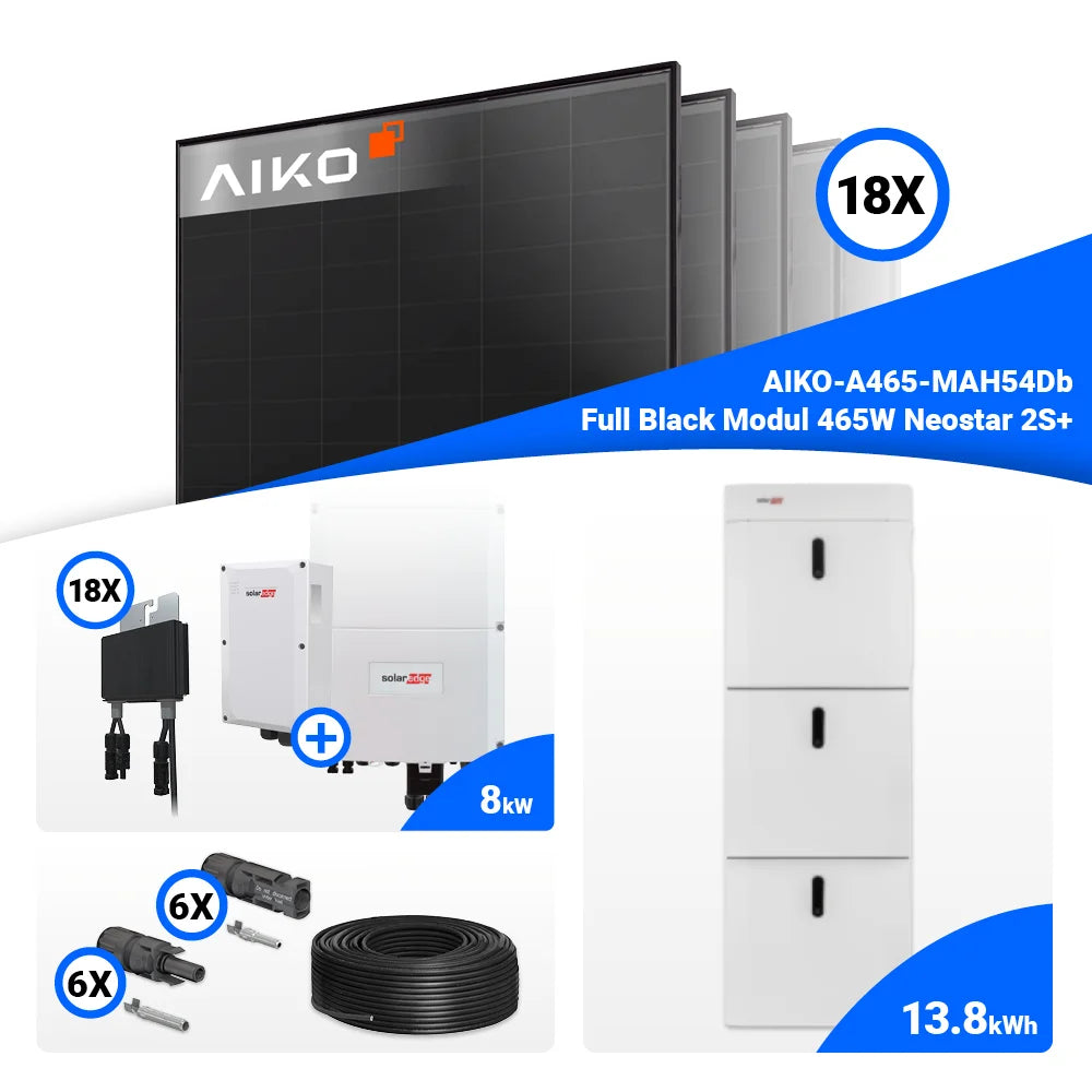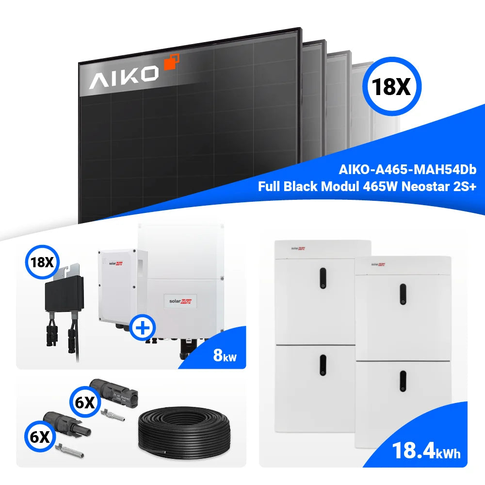 PV Komplettset 8 kWp – 18x AIKO 465W Full Black & Solaredge SE8K mit Speicheroption
