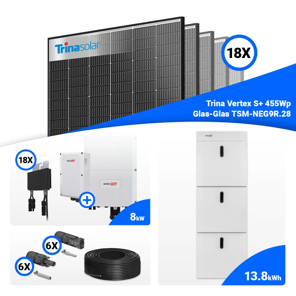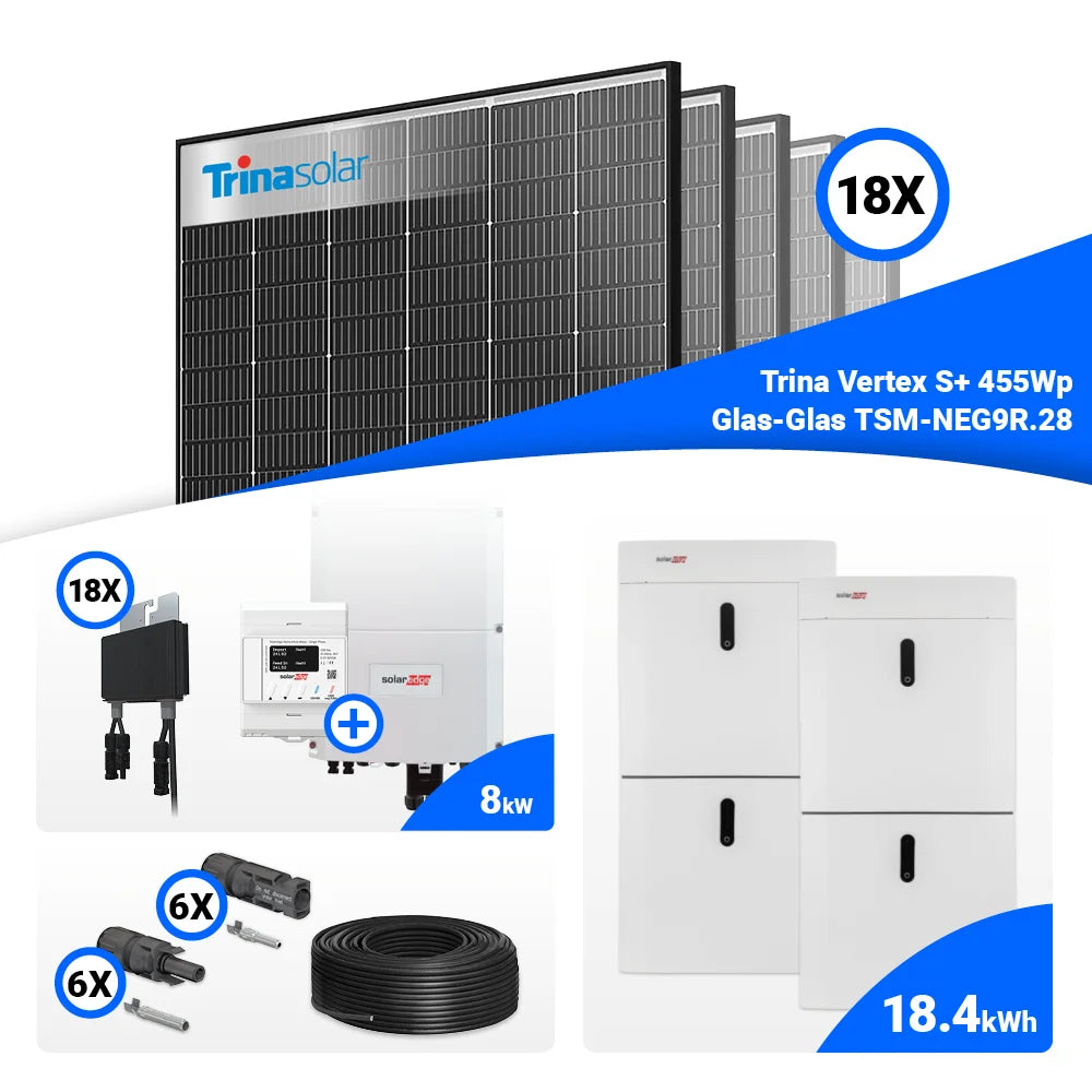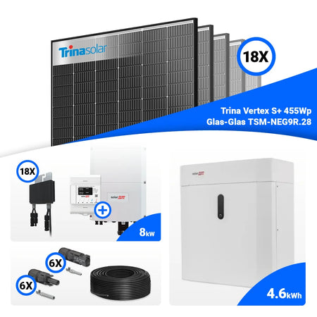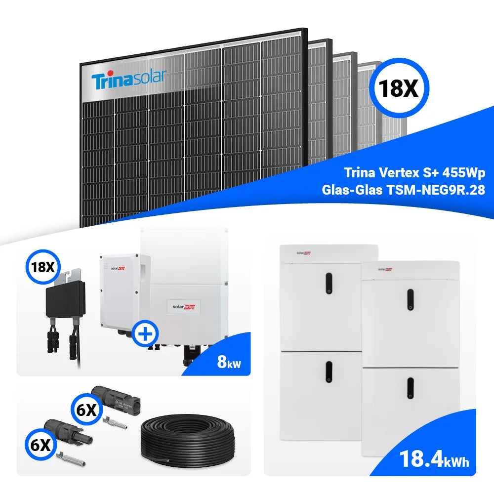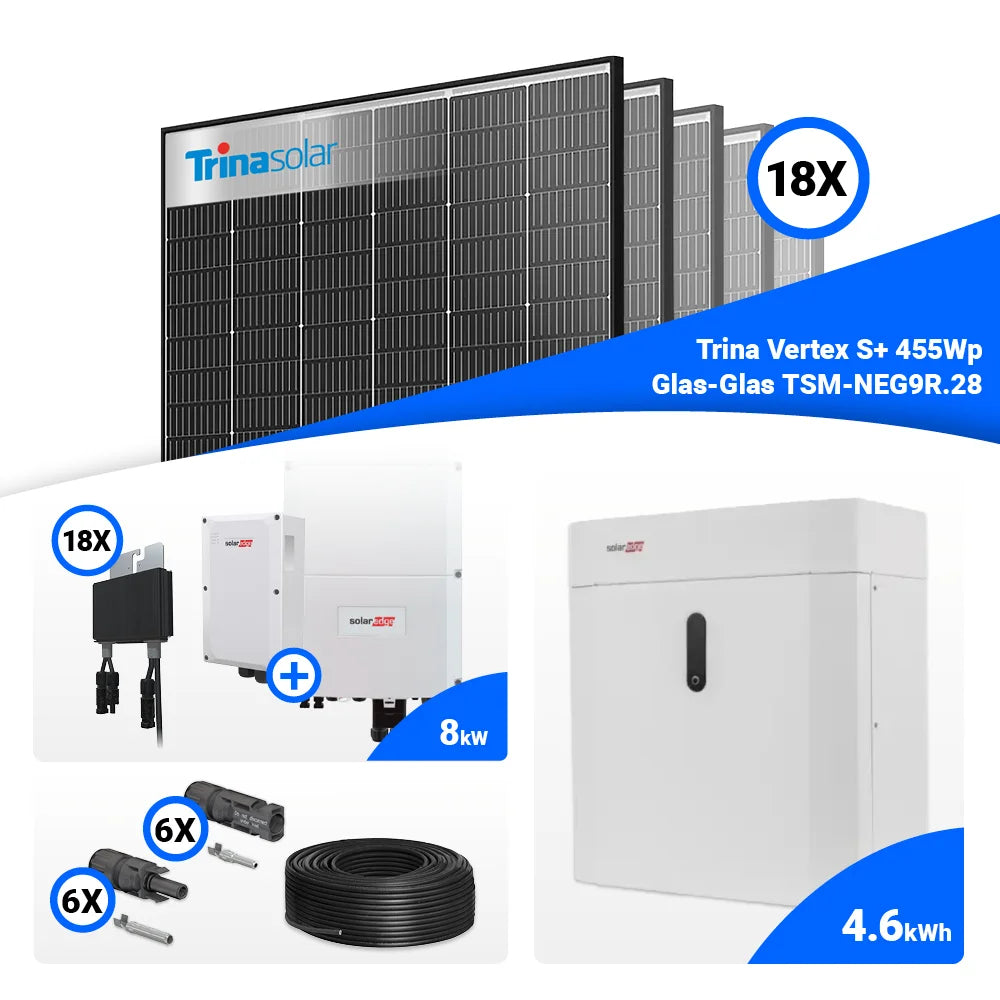 PV Komplettset 8 kWp – 18x Trina 455W Black Frame & Solaredge SE8K mit Speicheroption