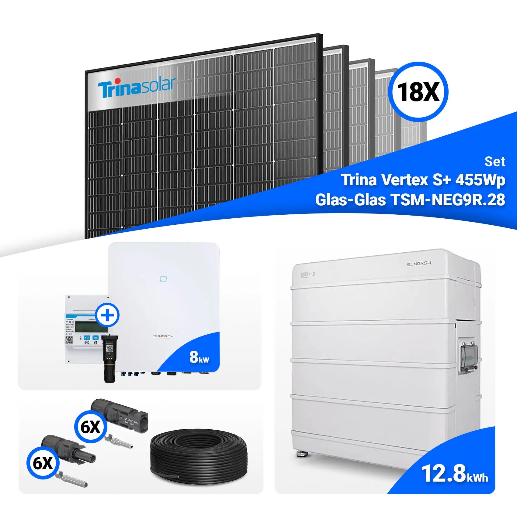 PV Komplettset 8 kWp – 18x Trina 455W Black Frame & Sungrow SH8.0RT mit Speicheroption