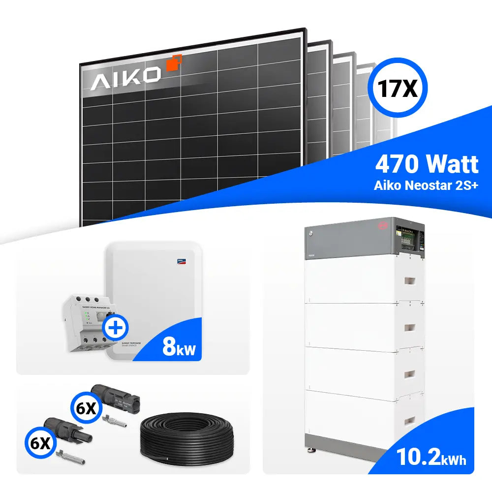 PV Komplettset 8 kWp – 17x AIKO 470W Black Frame & SMA STP8.0-3SE-40 mit Speicheroption