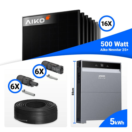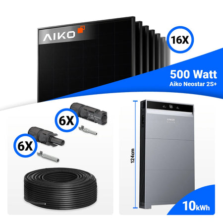 PV Komplettset 8 kWp – 16x AIKO 500W Full Black & Anker X1-H8K-T mit Speicheroption