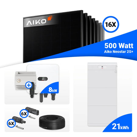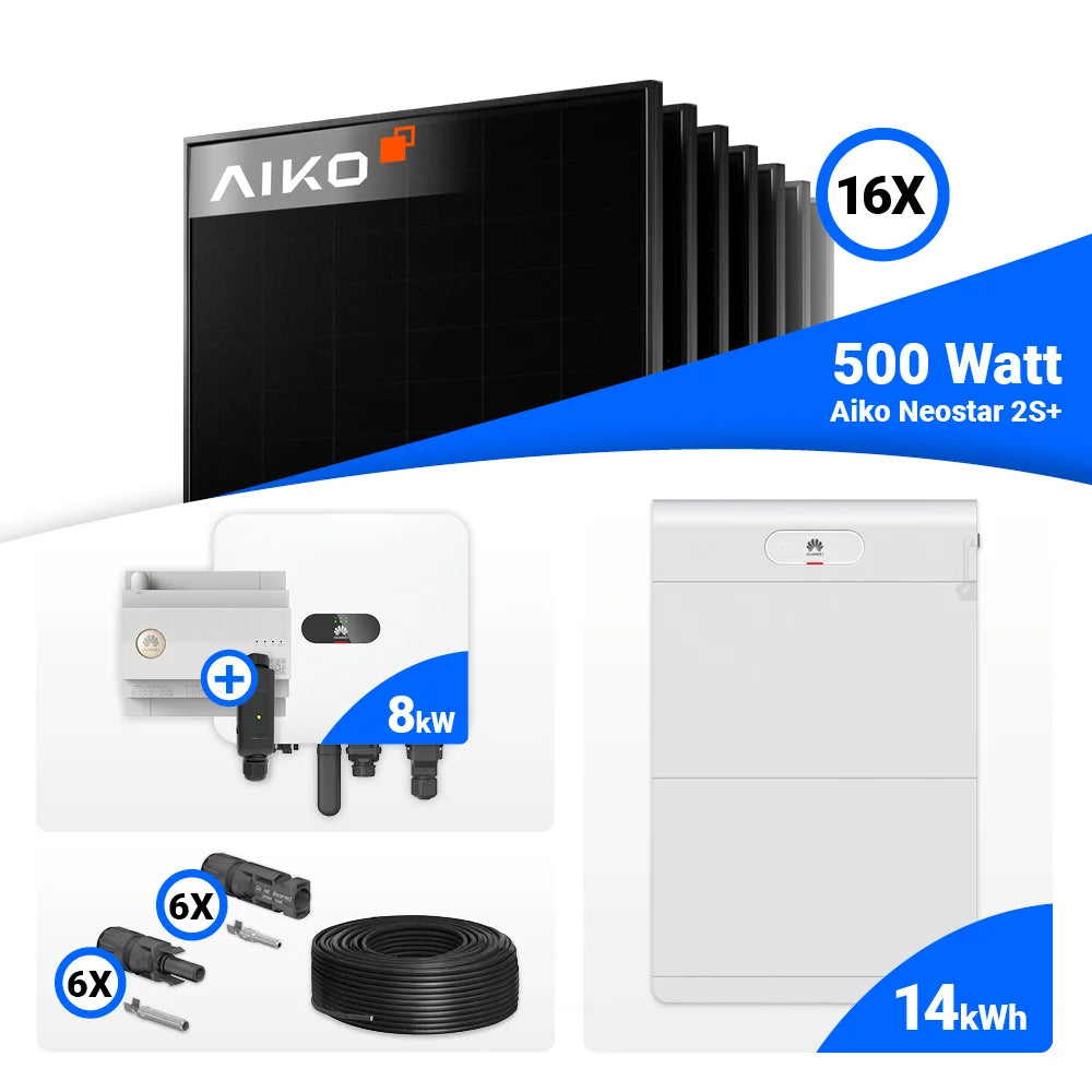 PV Komplettset 8 kWp – 16x AIKO 500W Full Black & Huawei MAP0 mit Speicheroption