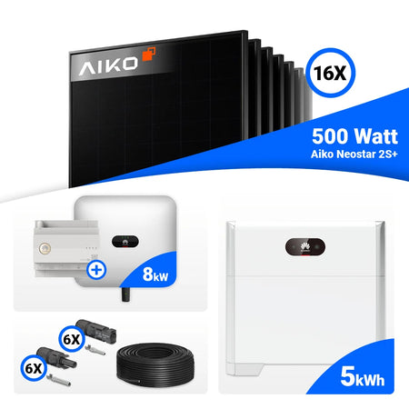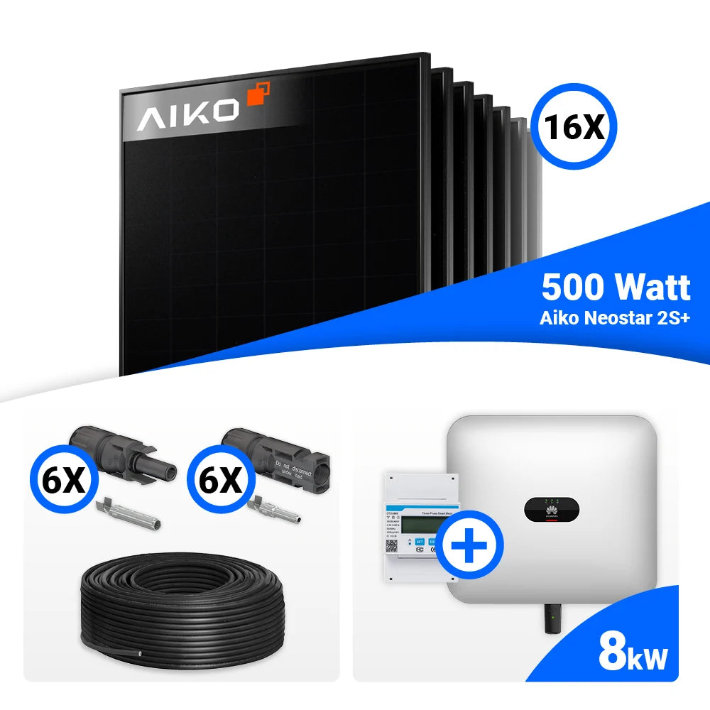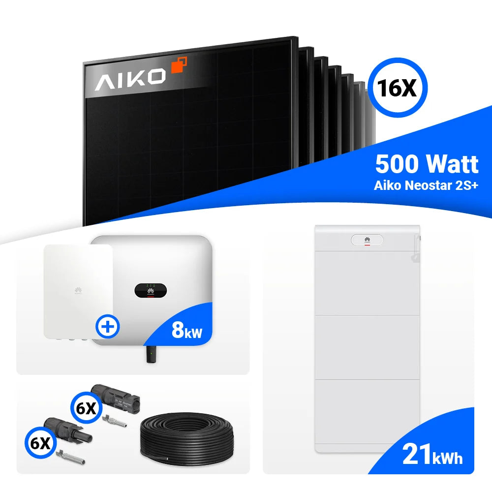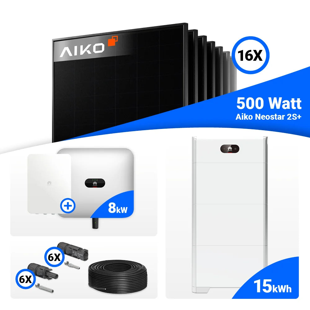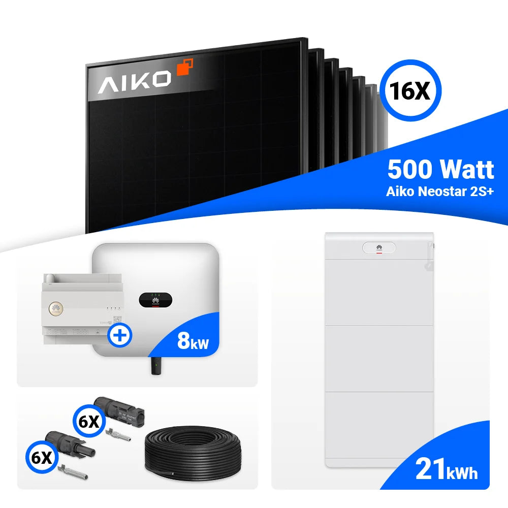 PV Komplettset 8 kWp – 16x AIKO 500W Full Black & Huawei SUN2000-8KTL-M1 mit Speicheroption