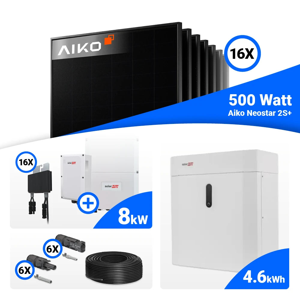 PV Komplettset 8 kWp – 16x AIKO 500W Full Black & Solaredge SE8K mit Speicheroption