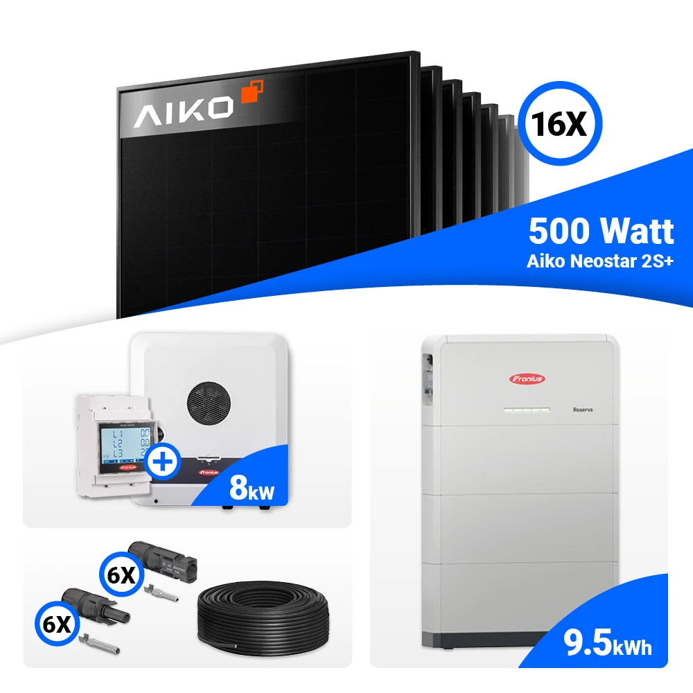 PV Komplettset 8 kWp – 16x AIKO 500W Full Black & Fronius SYMO-GEN24 8.0 mit Speicheroption