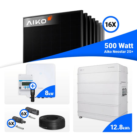 PV Komplettset 8 kWp – 16x AIKO 500W Full Black & Sungrow SH8.0RT mit Speicheroption