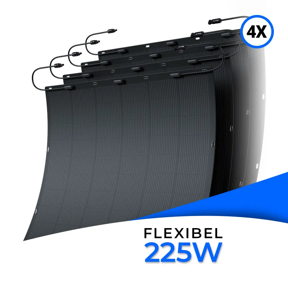Mit dem solago Flexibles Solarmodul Set 4×225 W erhältst du vier hochwertige, ultraleichte PV-Module mit insgesamt 900 W Leistung, die auf monokristalliner TOPCon-Technologie basieren.