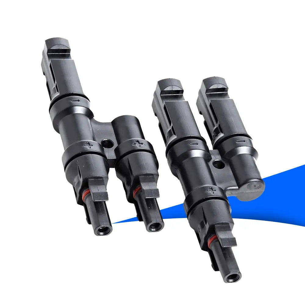 Perfekt für Photovoltaiksysteme, ist das Y-Stecker Verbindungs-Set MC4 die optimale Lösung für eine zuverlässige und wetterfeste Parallelschaltung von Solarmodulen.